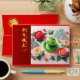 Cute baby snake surrounded by peonies and auspicious clouds in Origami style. Design on red envelope with golden Chinese and English greetings and golden handwriting 2025. Matching greeting card, sticker soon. Perfect for Chinese New Year of the Snake 2025.