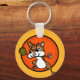 Cute chipmunk illustration basic button round key chain. Background colour can be customised.