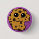 A cute chocolate chip cookie button with a purple background.