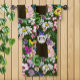 A cute chocolate sable ferret sitting amongst colourful flowers in a backdrop of dark green