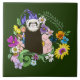 Cute Chocolate Sable Ferret Floral Green Ceramic Tile