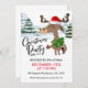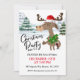 A moose wearing a Santa hat and bearing gifts are depicted on this cute Christmas party invitation.