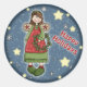 Cute Christmas angel with wreath Classic Round Sticker