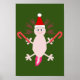 This awesome poster features a digital art image of a cute Christmas Axolotl. The Axolotl is pale pink with bright pink gills. It is holding a red and white striped candy cane in each hand and is wearing a festive Red and white Santa hat. The axolotl is type of Salamander from Mexico.