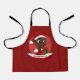 Kids' apron with an illustration of a cute smiling happy African American boy, the baby is wearing a Santa Claus costume with a red hat and holding a present, in a red circle; with a customisable text template for your child's name or message