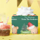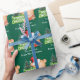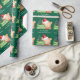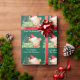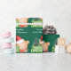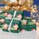 Cute Christmas paper with baby bear wearing Santa hat and Christmas tree on green background. Ideal wrap for kids with their names.