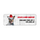 An adorable Blue Heeler, Queensland or Cattle dog in a Santa hat sits against a white background with faded 'woof' word art on these return address labels for the Christmas holiday season and dog lover.