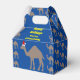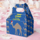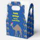 This awesome Christmas favour box features a digital art image of a cute sandy brown coloured Dromedary Camel with beautiful long eyelashes and a single hump on its back. The camel is dressed ready for celebrating Christmas with a red and white Santa hat on its head. The camel features in the Bible and is a traditional symbol of Christmas. There is custom text so you can include a message.