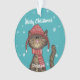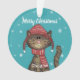 Cute Christmas Cat with Hat Holiday Custom Ornament