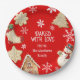 Add a festive touch to your holiday gifting with these cheerful paper plates, featuring a vibrant red background and a playful assortment of Christmas cookie illustrations. From snowmen and stockings to gingerbread houses, snowflakes, and tree-shaped treats, each design adds a dash of seasonal charm and homemade joy. Whether you're sharing baked goods with neighbors, surprising a friend, or wrapping up party favors, these plates make your sweet treats feel even more special. The text is fully customizable—just click “Personalize this template” to add your name, or holiday message to make it truly your own.