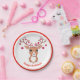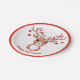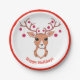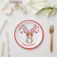 Cute Christmas deer decorated with red balls on white background with red frame paper plate.
