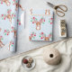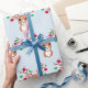 Cute Christmas deer head decorated with Christmas balls on light blue background wrapping paper.