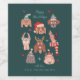 Cute and funny Christmas wine label featuring hand drawn illustration of various dogs wearing winter accessories. The text says "happy howlidays."