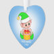 Cute Christmas elf, custom name on light blue Heart Ornament.
