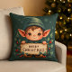 Cute Christmas Elf Holding Merry Sign Green Cushion