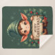 Cute Christmas Elf Holding Merry Sign Green Sherpa Blanket