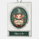 Cute Christmas Elf Holding Merry Sign Green Silver Plated Banner Ornament