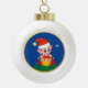 Cute Christmas Elf on blue Ceramic Ball Christmas Ornament