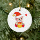 Cute Christmas elf holding a gift box on white Ceramic Ornament.