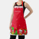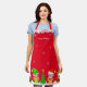 Cute Christmas Elf Squad & white pine with snowflakes on Red Apron. Happy Holidays text can be personalised.