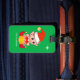 Cute Christmas elf holding a gift box and star on green Luggage Tag. All texts ready to be personalised.