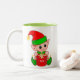 Cute Christmas Elf with Gift Box & Editable Text Two-Tone Coffee Mug