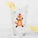 This awesome glass tumbler features a digital art image of a cute Christmas Fox. The fox is orange with white with a bushy tail, black whiskers and a black nose. It also has beautiful yellow eyes. and is wearing a red and white Santa hat on its head.