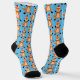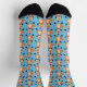 This awesome pair of patterned crew socks features a digital art image of a cute Christmas Fox. The fox is orange with white with a bushy tail, black whiskers and a black nose. It also has beautiful yellow eyes. and is wearing a red and white Santa hat on its head.