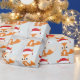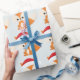 Cute Christmas Fox Santa Hat Pastel Blue Pattern Wrapping Paper