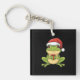 Cute Christmas Frog with Santa Hat Holding Gift - Key Ring