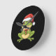 Cute Christmas Frog with Santa Hat Holding Gift - Round Clock