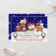Cute Christmas Gingerbread Train design with a blue background and snowflakes overlay