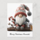 Cute Christmas Gnome with a Candy Cane on a Log Postcard