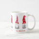 Cute Christmas personalised holiday mug featuring six cute nordic gnomes with red and white seasonal Scandinavian style hats and light grey tunics. Add your name in fun red typography.