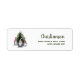 Three cute Christmas gnomes in front of a Christmas tree return address labels customised with your name and address.