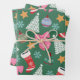 Cute christmas - abstract retro colourful christmas –green / pastel green holiday pattern featuring bows / ribbons, christmas trees, baubles, snowflakes, christmas stockings and stars.