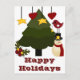 Cute Christmas Holidays Tree Snowman Stars Bird Holiday Postcard