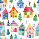 Cute Christmas houses that are so festive and colourful decorate these wrapping paper sheets. They form fun scenes of wintry lanes of little homes in the white snow, intermixed with star-topped decorated trees. The watercolor patterns have a retro origin, so popular today. Each of the three papers has a different scene, that work very well together as a set or individually.