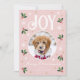 Cute Christmas Joy Custom Name Photo Pink Holiday Card