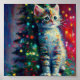 Christmas kitten, Christmas tree and lights. Cute AI generated artwork.