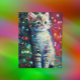 Christmas kitten, Christmas tree and lights. Cute AI generated artwork.
