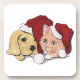 Cute Christmas Labrador Puppy and Orange Tabby Coaster