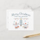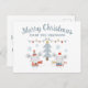 This festive Christmas postcard features an cute winter woodland theme. An image of a two little mice are pictured standing next to a Christmas tree, beneath colourful lights and snowflakes. A "Merry Christmas" greeting is printed at the top, followed by a sample family name. You can personalise the postcard with your own custom name or text.