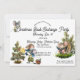 A postcard invitation for a Christmas Party (this is a book club exchange event) features watercolor depictions of fully-clothed mice decorating a mouse-sized tree with a cheese star, seeds and nuts while another mouse sits in the shell of a walnut, with an open book. His seat is backed by an evergreen sprig. But house mouses are everywhere and one is climbing on the "C" in "Christmas Book Exchange Party". He's wearing a yellow shirt and fluffy green pantaloons from which his tail dangles. It is simple to substitute your event details for our placeholders. Just click "Personalise" and get started. The back features the usual postcard format with your return address, a personal message and "Kindly Deliver To:" in the same fonts. In the centre is a (small) watercolor scene of two mice sledding in the snow. Two contrasting playful fonts (in black) have been selected for this fun Christmas Party Invitation.