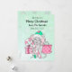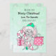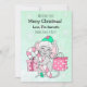 Adorable hand drawn whimsical card with a cute festive mouse wearing a Santa hat holding a candy cane surrounded by gifts. Just add your names in the personalise area. Pink Christmas themed card.