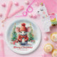 Celebrate in style with this cute Christmas mouse party paper plates. Perfect for decorating your Christmas or holiday party. This watercolor ai art illustration, in cheerful colours, features a cute Christmas mouse and decorated Christmas trees. Playful and charming, it's the perfect way to set the tone for a fun celebration and wish your loved ones a Merry Christmas.