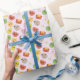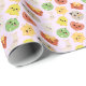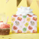 A cute style pattern featuring smiling Christmas ornaments including stars, hearts, bells, snowflakes, moons, and baubles.