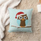 These beautiful throw pillow features an adorable vector illustration of a brown and blue owl wearing a Santa Claus hat perched on a tree branch on a snowy background. Perfect to decorate any room for the winter holidays!