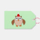 This awesome set of gift tags features a funny cartoon of a Christmas owl with sleepy eyes, a small orange beak and cute little orange feet. The owl is brown with a cream belly and is wearing a red and white Santa hat ready for Christmas. There is customisable text on the back so you can personalise your gift tags.