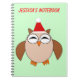 This awesome customisable notebook features a funny cartoon of a Christmas owl with sleepy eyes, a small orange beak and cute little orange feet. The owl is brown with a cream belly and is wearing a red and white Santa hat ready for Christmas. There is customisable text at the top of the notebook allowing you to personalise it for yourself or give it as a gift.